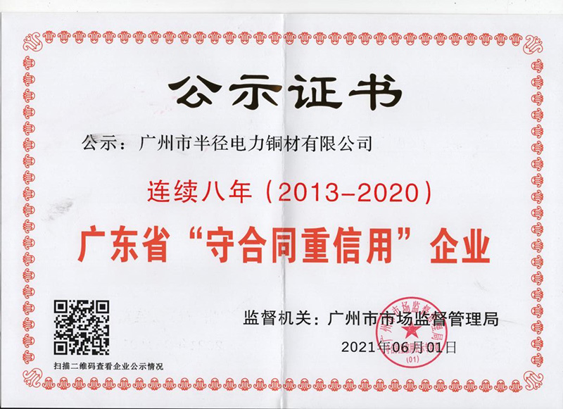 • 廣東省守合同重信用企業(連續八年)